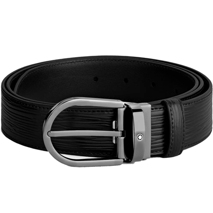 Черный кожаный ремень с подковообразной пряжкой 35мм от магазина премиальных ручек Premium Pens в Нижнем Новгороде.