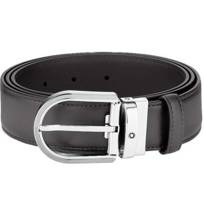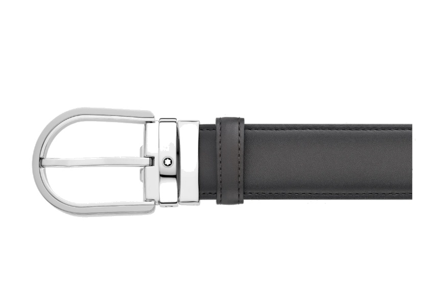 Кожаный ремень с пряжкой в форме подковы серого цвета 35 мм от магазина премиальных ручек Premium Pens в Нижнем Новгороде.